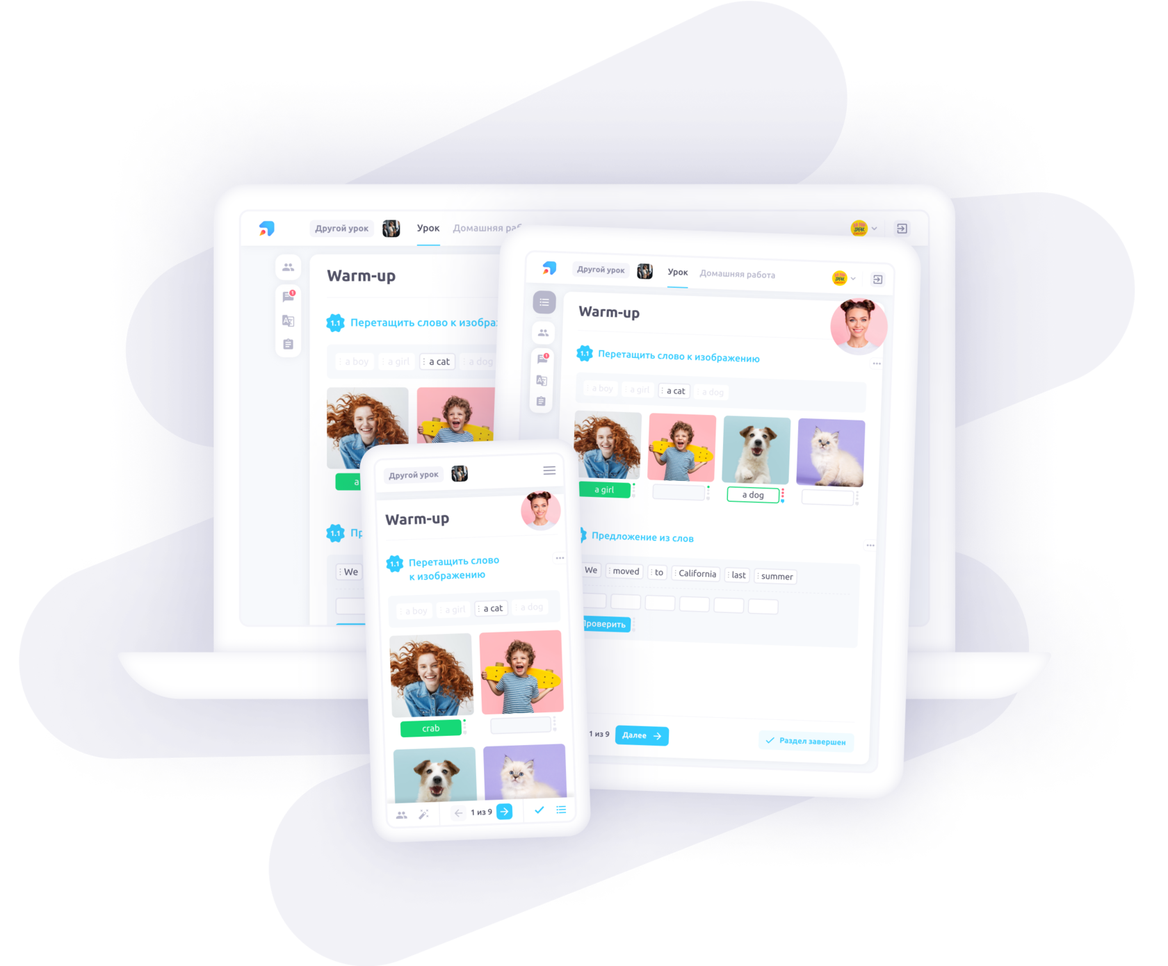 Я пробовала разные сервисы, но на платформе, конечно, удобнее. Всем нравится элемент игры: нужно что-то сопоставить, перетащить или впечатать. Удобно давать задания, можно отправить урок на самостоятельное изучение.